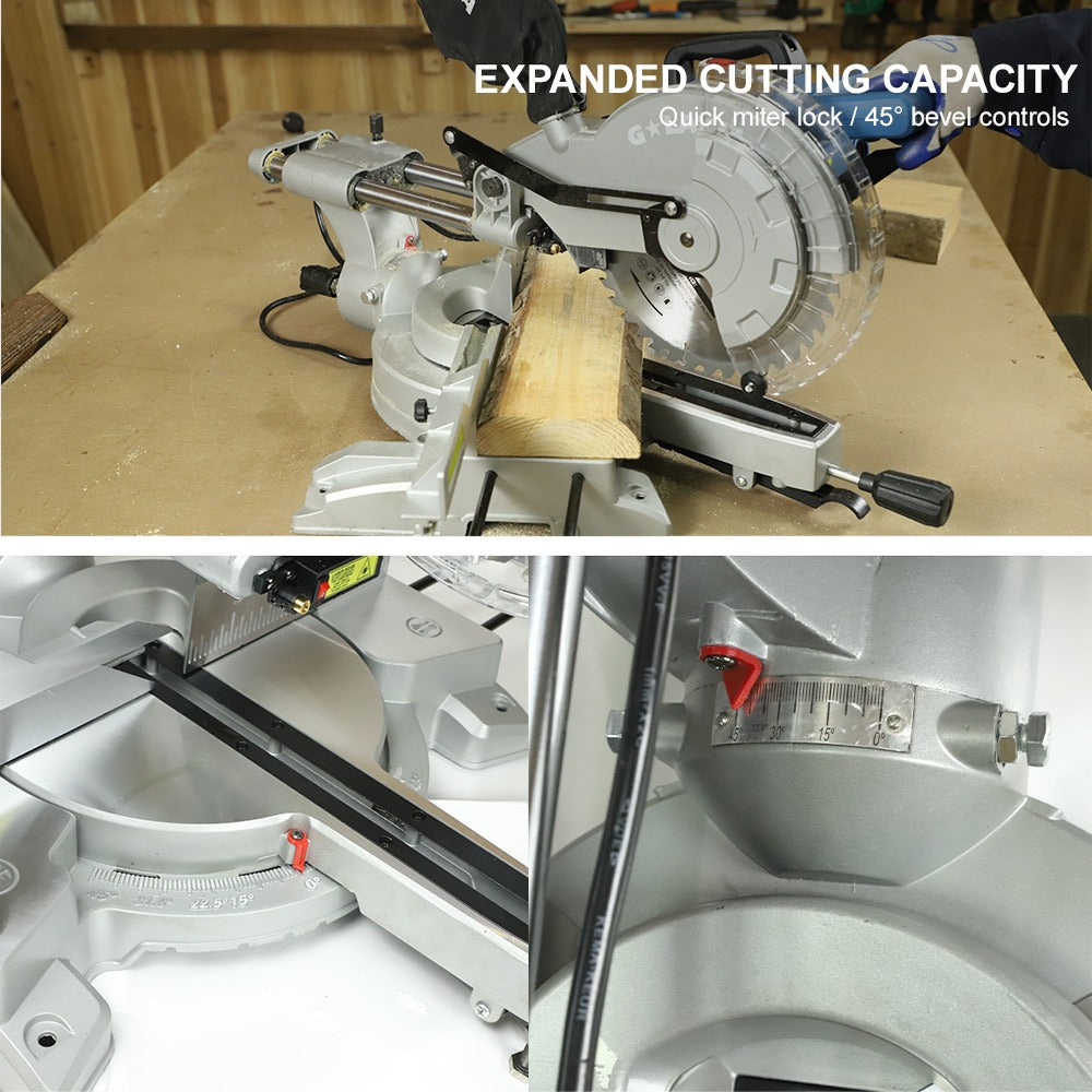 - Doble corte bisel e inglete con máxima precisión